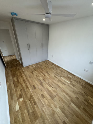 The renovation resulted in a top-floor flat that was expanded with an additional floor, increasing its size from 51 sqm to 110 sqm. The layout was reimagined, transforming the property from a two-bedroom, one-bathroom flat into a spacious three-bedroom, three-bathroom home. A bespoke kitchen was installed, and each room now features built-in wardrobes for added storage. The master bedroom boasts a luxurious en-suite, completing the transformation into a modern and functional living space.
